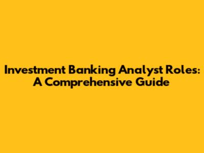 Investment Banking Analyst Roles: A Comprehensive Guide