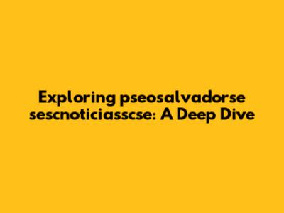 Hey guys! Today, we're diving deep into the world of pseosalvadorse sescnoticiasscse. I know, it sounds like a mouthful, right? But trust me, we're going to break it down and explore what it's all about. This term might seem complex, but by the end of this article, you'll have a solid understanding of its significance and implications. So, let’s jump right in and unravel the mysteries of pseosalvadorse sescnoticiasscse!