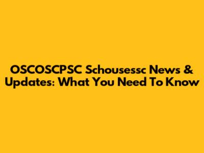 OSCOSCPSC Schousessc News & Updates: What You Need To Know