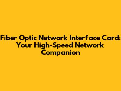 Fiber Optic NIC: The Gateway To Fast Networks
