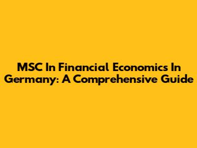 MSC In Financial Economics In Germany: A Comprehensive Guide
