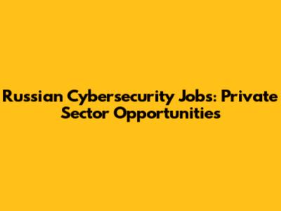 Russian Cybersecurity Jobs: Private Sector Opportunities