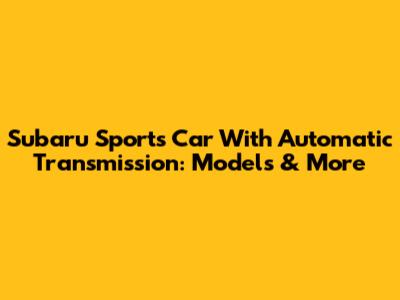 Subaru Sports Car With Automatic Transmission: Models & More