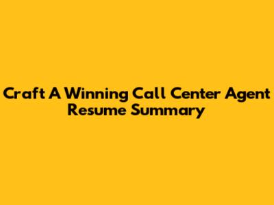 Craft A Winning Call Center Agent Resume Summary