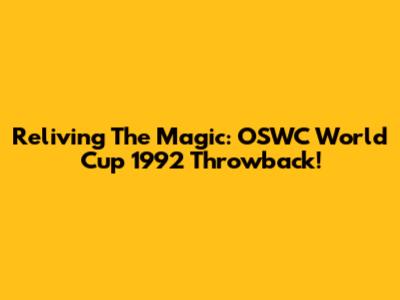 Reliving The Magic: OSWC World Cup 1992 Throwback!