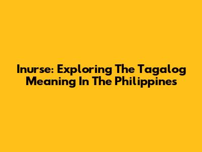 Inurse: Exploring The Tagalog Meaning In The Philippines
