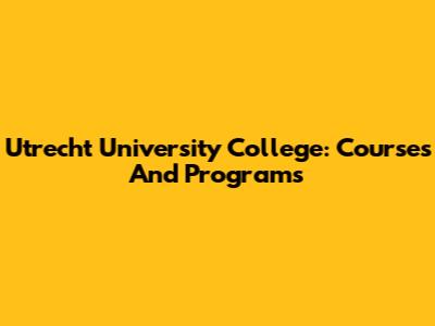 Utrecht University College: Courses And Programs