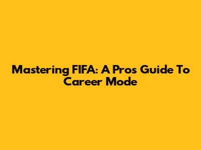 Mastering FIFA: A Pro's Guide To Career Mode