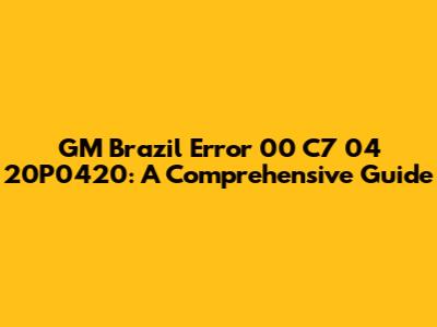 Understanding the GM Brazil Error 00 C7 04 20P0420