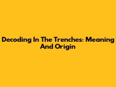 Decoding 'In The Trenches': Meaning And Origin
