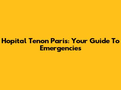 Hopital Tenon Paris: Your Guide To Emergencies