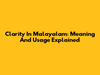 Clarity In Malayalam: Meaning And Usage Explained