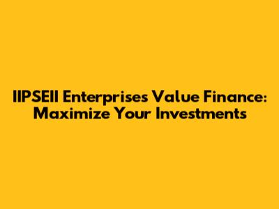 IIPSEII Enterprises Value Finance: Maximize Your Investments