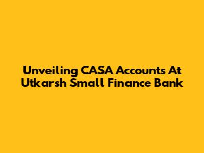 Unveiling CASA Accounts At Utkarsh Small Finance Bank