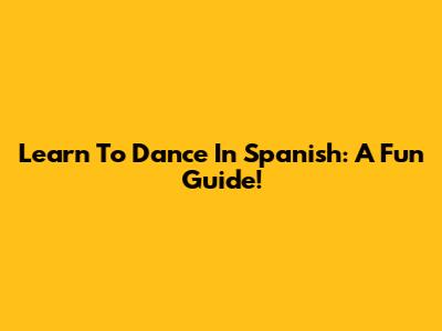 Learn To Dance In Spanish: A Fun Guide!