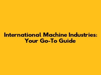 International Machine Industries: Your Go-To Guide