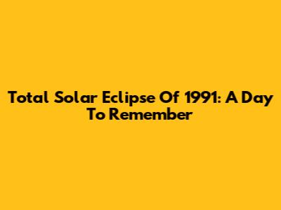 Total Solar Eclipse Of 1991: A Day To Remember