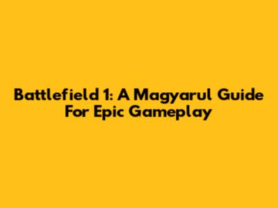 Battlefield 1: A Magyarul Guide For Epic Gameplay