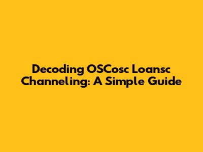 Decoding OSCosc Loansc Channeling: A Simple Guide
