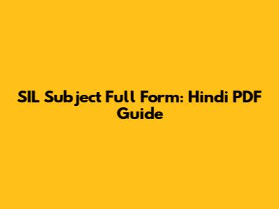 SIL Subject Full Form: Hindi PDF Guide