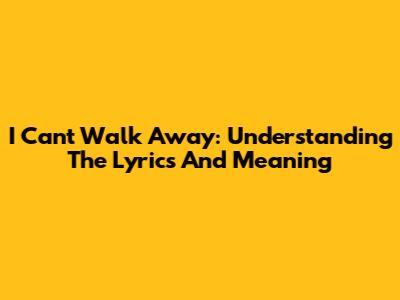 I Can't Walk Away: Understanding The Lyrics And Meaning