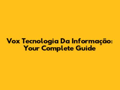 Vox Tecnologia Da Informação: Your Complete Guide