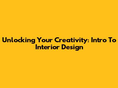 Unlocking Your Creativity: Intro To Interior Design