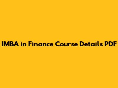 By understanding the IMBA in Finance course details PDF, prospective students can make well-informed decisions. This guide helps clarify the components, benefits, curriculum, and resources for finding detailed program information, enhancing their prospects in the competitive finance industry. Remember to research thoroughly and choose a program that aligns with your career aspirations.