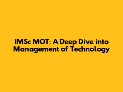 Hey guys! Ever wondered how technology and management blend together to shape the future? Let's dive into the fascinating world of the IMSc Management of Technology (MOT) program. This isn't just another academic course; it's a journey into understanding how technology drives innovation and how management principles steer that innovation toward success. Buckle up, because we're about to explore what makes this program so special and why it might just be the perfect fit for you.