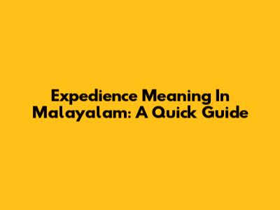 Expedience Meaning In Malayalam: A Quick Guide