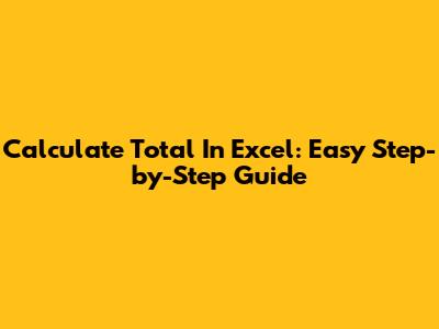 Calculate Total In Excel: Easy Step-by-Step Guide