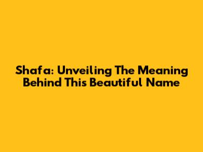 Shafa: Unveiling The Meaning Behind This Beautiful Name