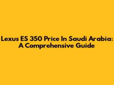 Lexus ES 350 Price In Saudi Arabia: A Comprehensive Guide