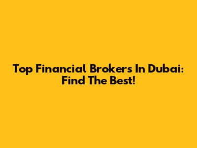 Top Financial Brokers In Dubai: Find The Best!