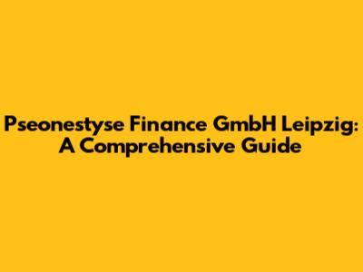 Pseonestyse Finance GmbH Leipzig: A Comprehensive Guide