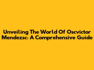 Unveiling The World Of Oscvictor Mendezsc: A Comprehensive Guide