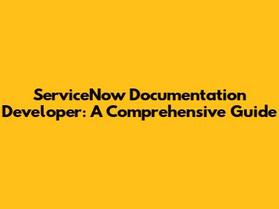 ServiceNow Documentation Developer: A Comprehensive Guide
