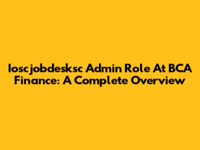Ioscjobdesksc Admin Role At BCA Finance: A Complete Overview