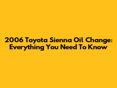 2006 Toyota Sienna Oil Change: Everything You Need To Know