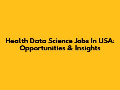 Health Data Science Jobs In USA: Opportunities & Insights