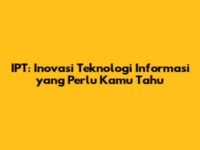 IPT: Inovasi Teknologi Informasi Yang Perlu Kamu Tahu