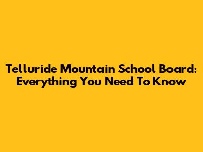 Telluride Mountain School Board: Everything You Need To Know