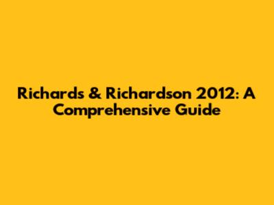 Richards & Richardson 2012: A Comprehensive Guide