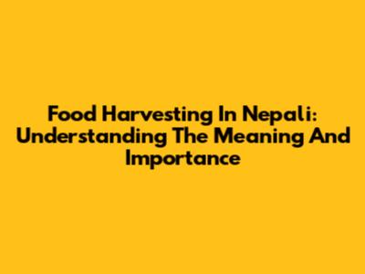 Food Harvesting In Nepali: Understanding The Meaning And Importance