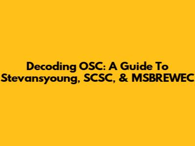 Decoding OSC: A Guide To Stevansyoung, SCSC, & MSBREWEC
