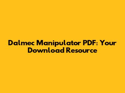 Dalmec Manipulator PDF: Your Download Resource