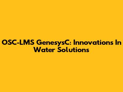 OSC-LMS GenesysC: Innovations In Water Solutions