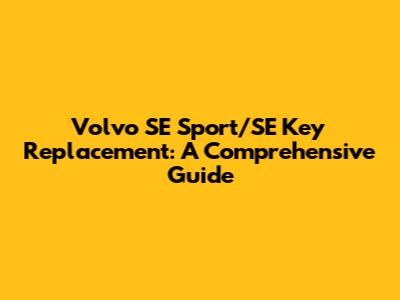 Volvo SE Sport/SE Key Replacement: A Comprehensive Guide