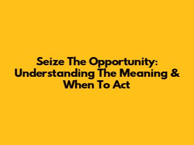 Seize The Opportunity: Understanding The Meaning & When To Act