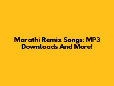 Marathi Remix Songs: MP3 Downloads And More!